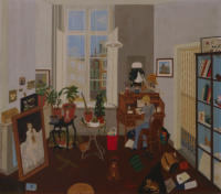 gebruikte zelden of nooit een schildersezel. Ze legde haar doek, paneel of vel papier op tafel en keek er bovenaf op neer.
